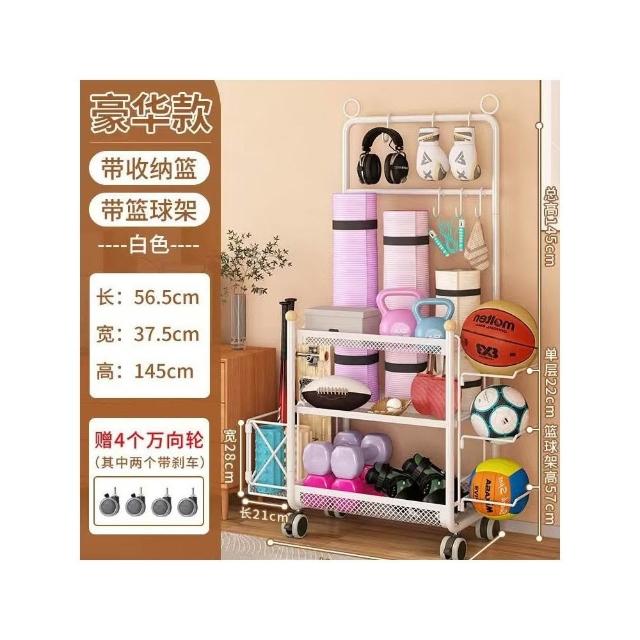 廠家健身器材收納架瑜伽墊籃帶輪籃球置物架家庭多功能運動用品收