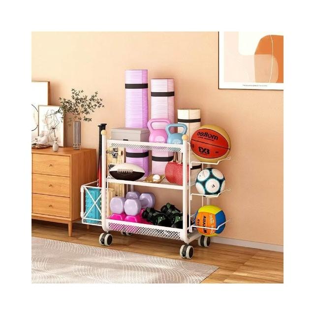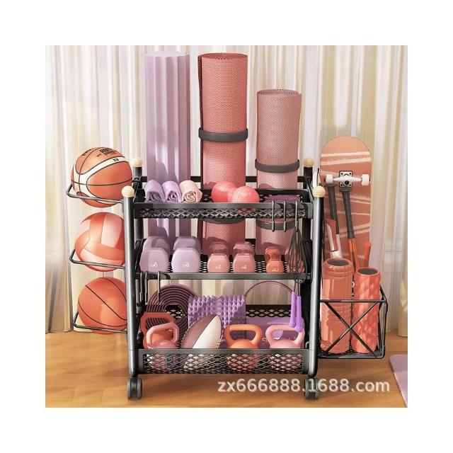廠家健身器材收納架瑜伽墊籃帶輪籃球置物架家庭多功能運動用品收