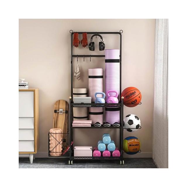 廠家健身器材收納架瑜伽墊籃帶輪籃球置物架家庭多功能運動用品收