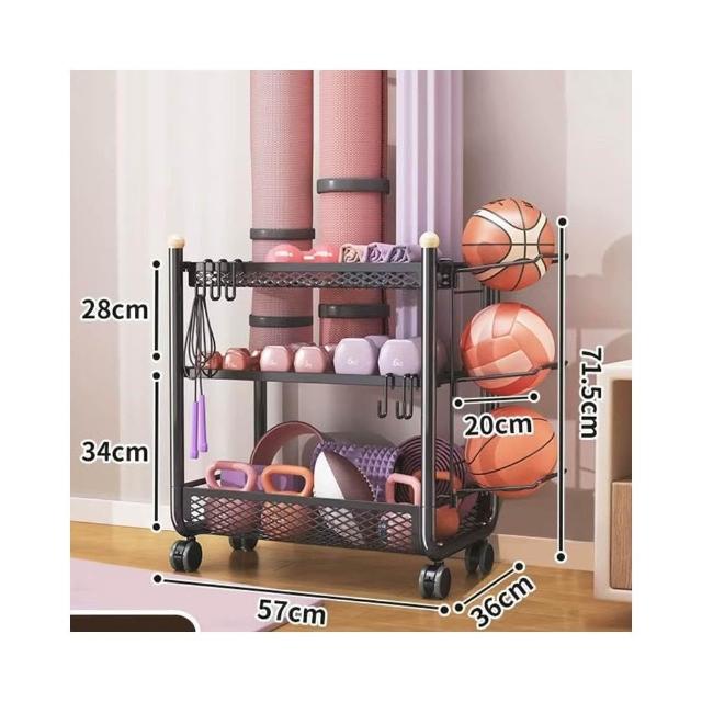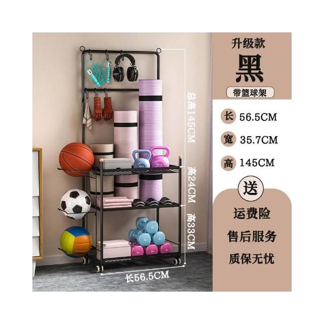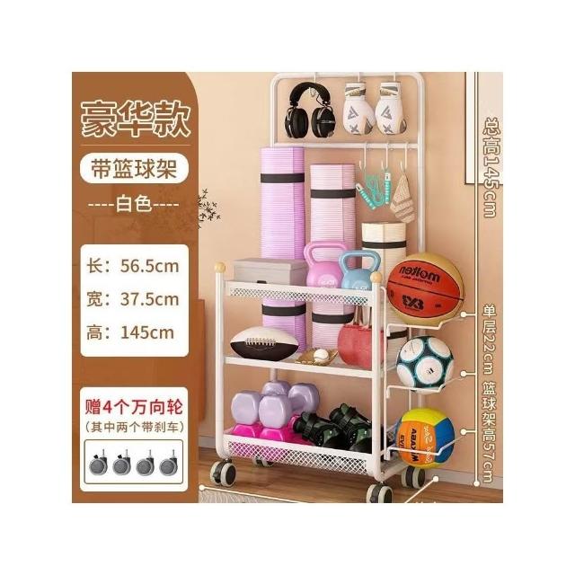 廠家健身器材收納架瑜伽墊籃帶輪籃球置物架家庭多功能運動用品收