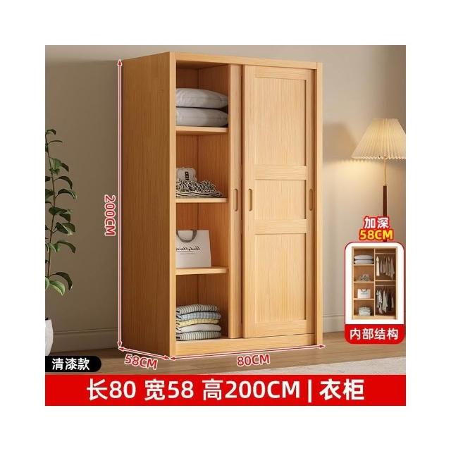 全實木衣櫃家用臥室推拉門衣櫃小戶型現代原木風滑門衣櫥