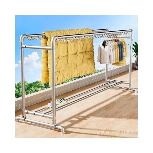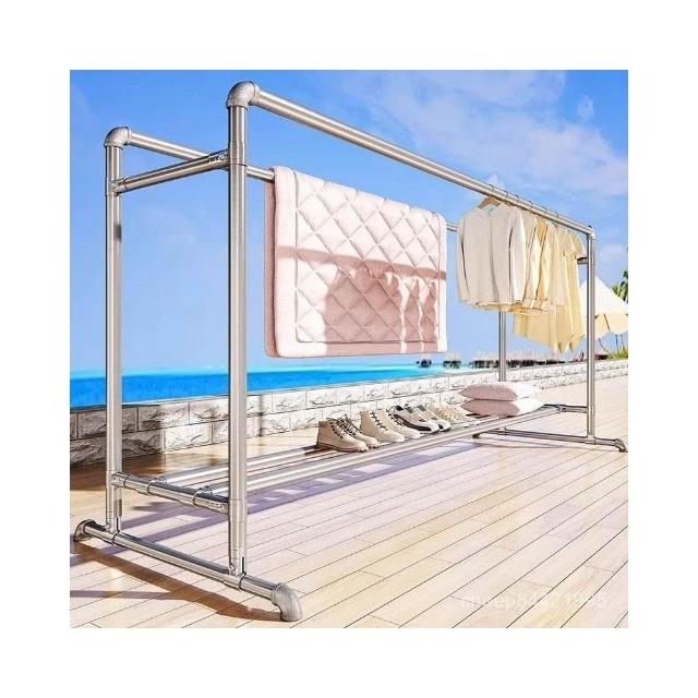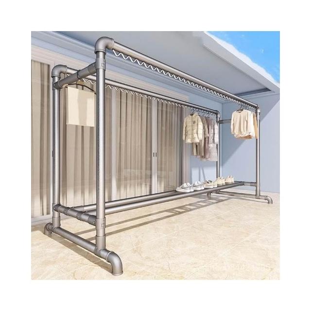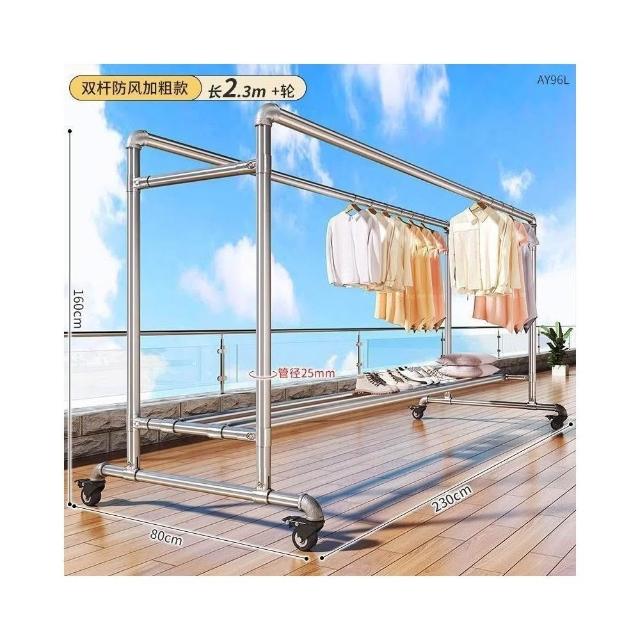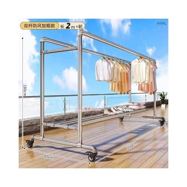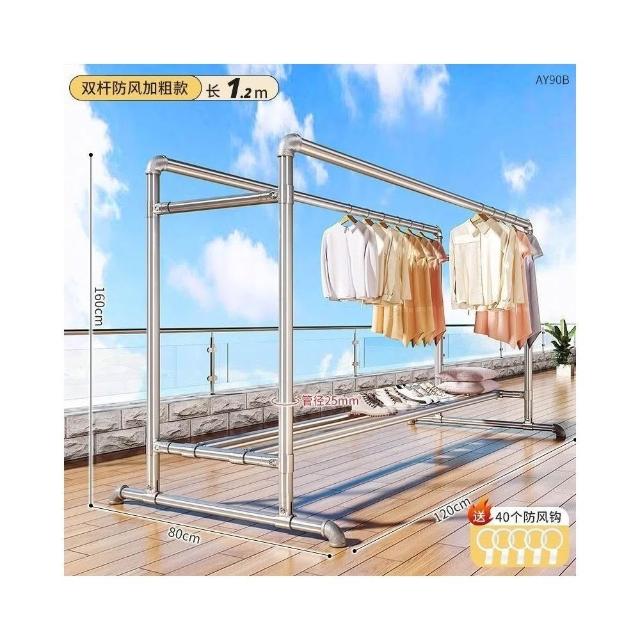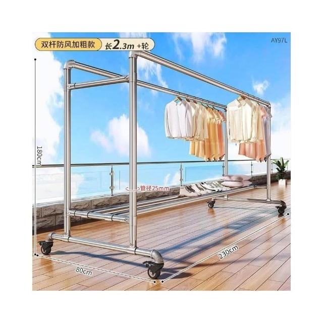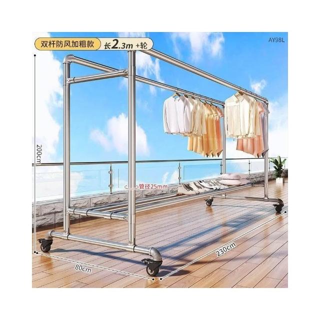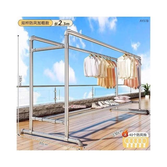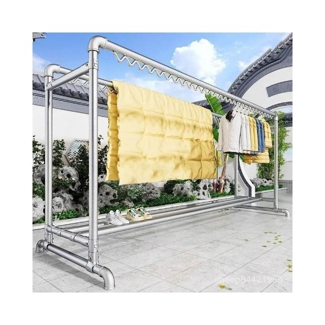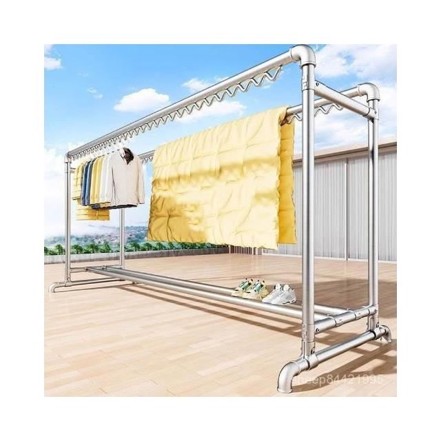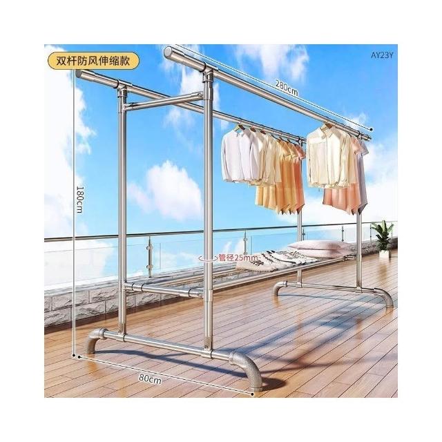 鋼管晾衣架雙桿掛衣服架子曬衣曬被子防風鐵絲加粗鋼管簡易水管架 衣架