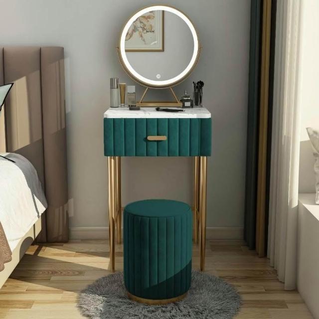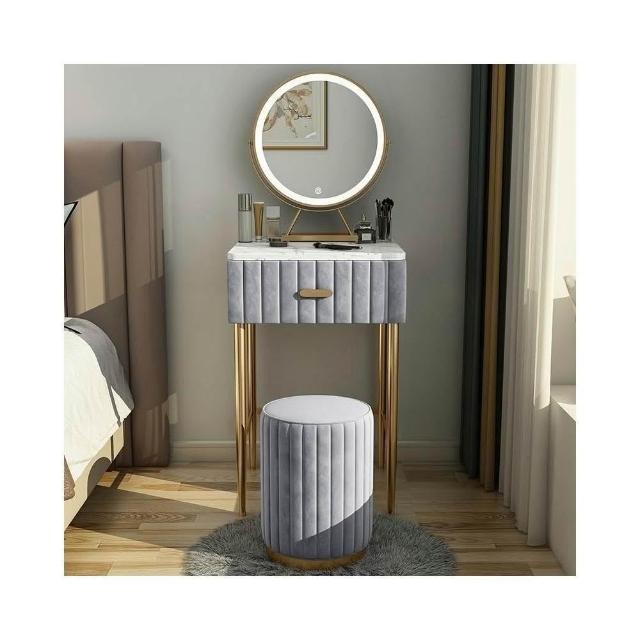 60/50/40公分輕奢北歐迷你小戶型梳妝臺桌 大理石檯面 臥室化妝臺桌帶燈單人小型化妝台化妝桌梳妝台梳妝桌