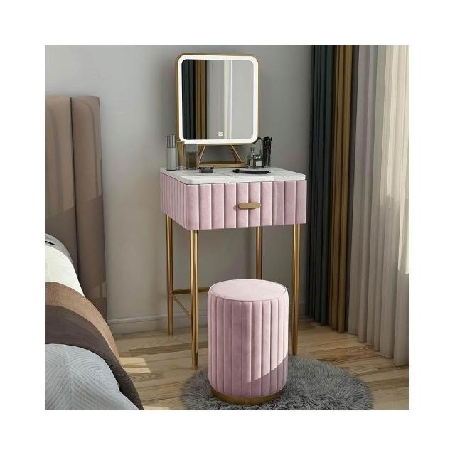 60/50/40公分輕奢北歐迷你小戶型梳妝臺桌 大理石檯面 臥室化妝臺桌帶燈單人小型化妝台化妝桌梳妝台梳妝桌