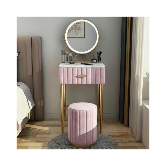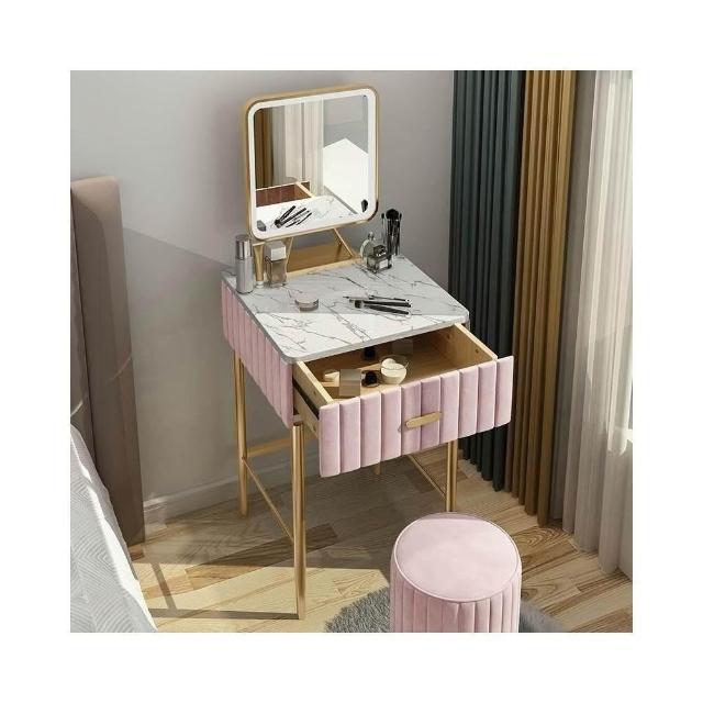 60/50/40公分輕奢北歐迷你小戶型梳妝臺桌 大理石檯面 臥室化妝臺桌帶燈單人小型化妝台化妝桌梳妝台梳妝桌