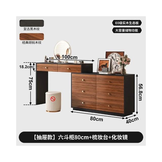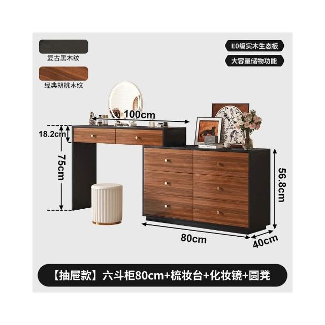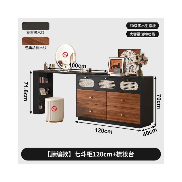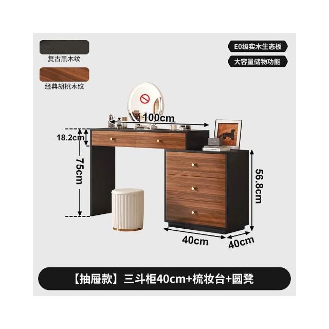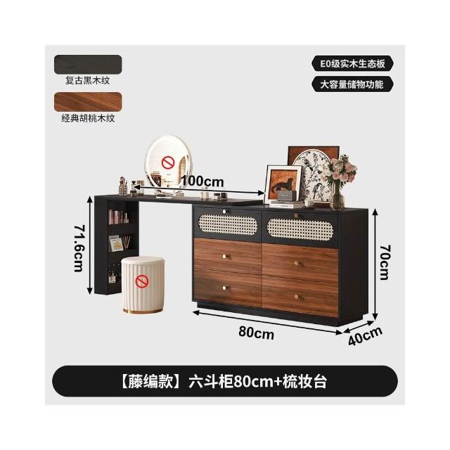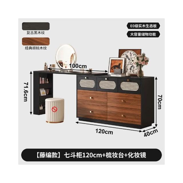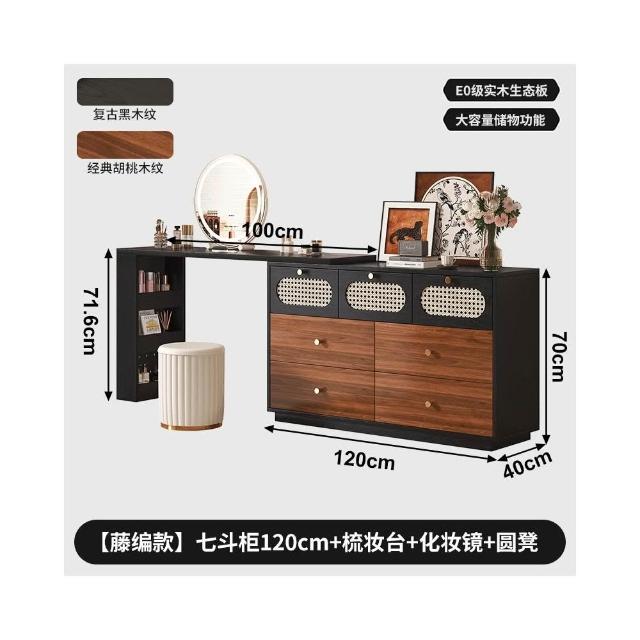 實木梳妝臺臥室現代簡約轉角化妝桌鬥櫃一體中古風靠牆床尾收納櫃
