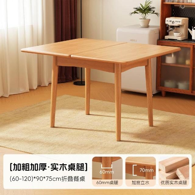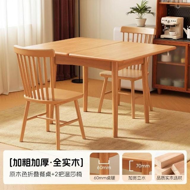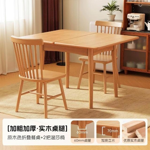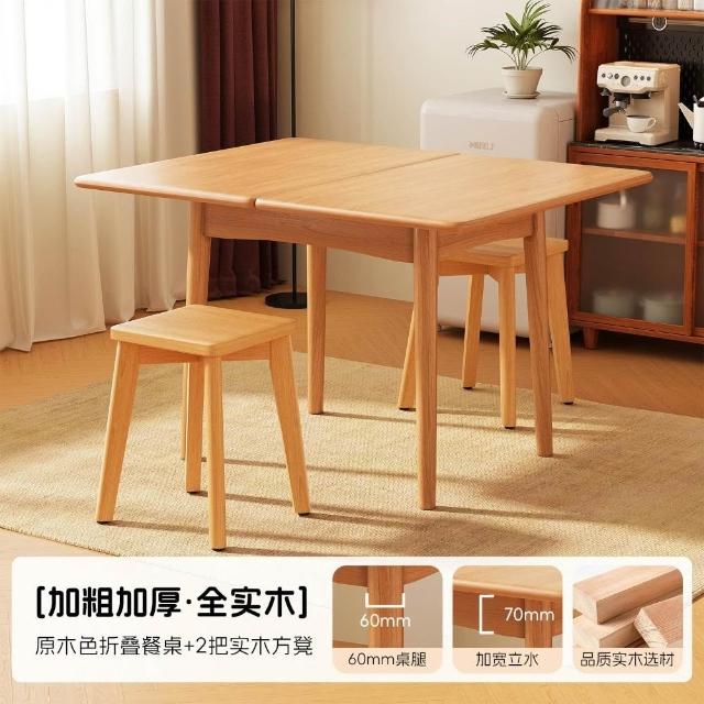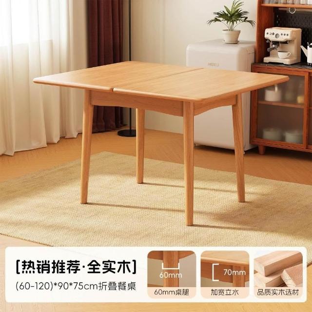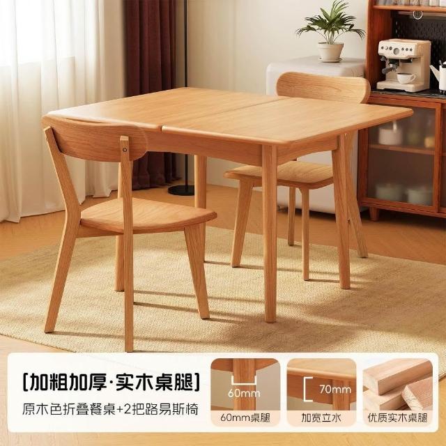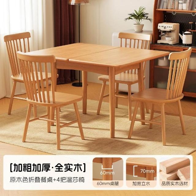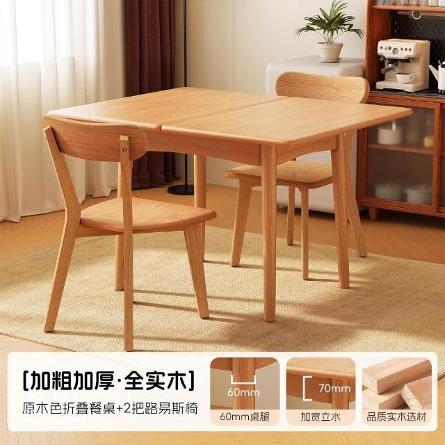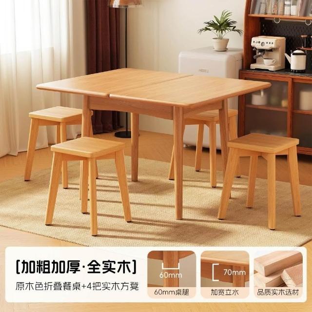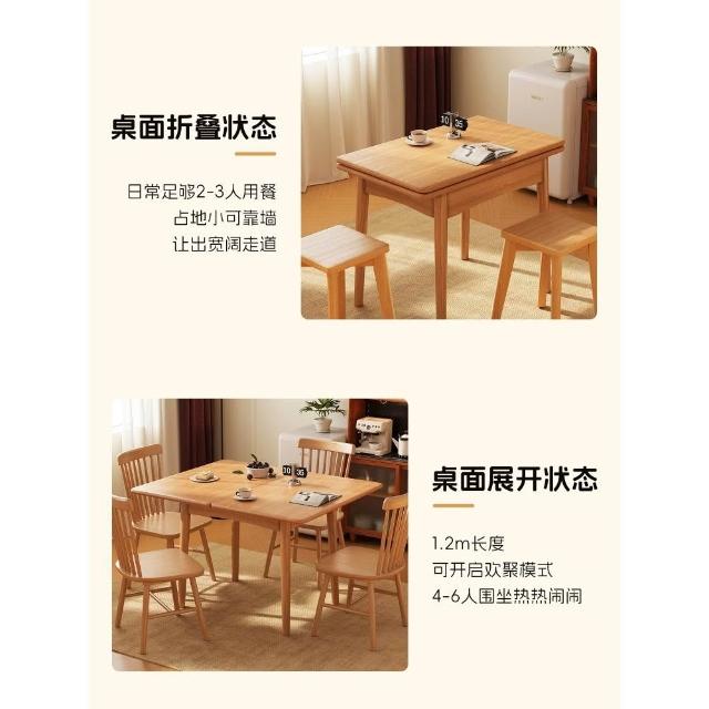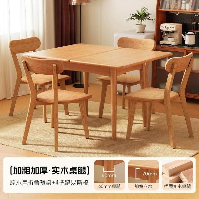 實木餐桌小戶型家用折疊桌現代簡約餐廳吃飯桌子家用方桌桌椅組合