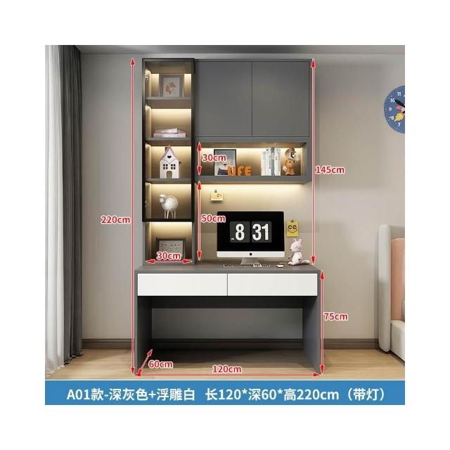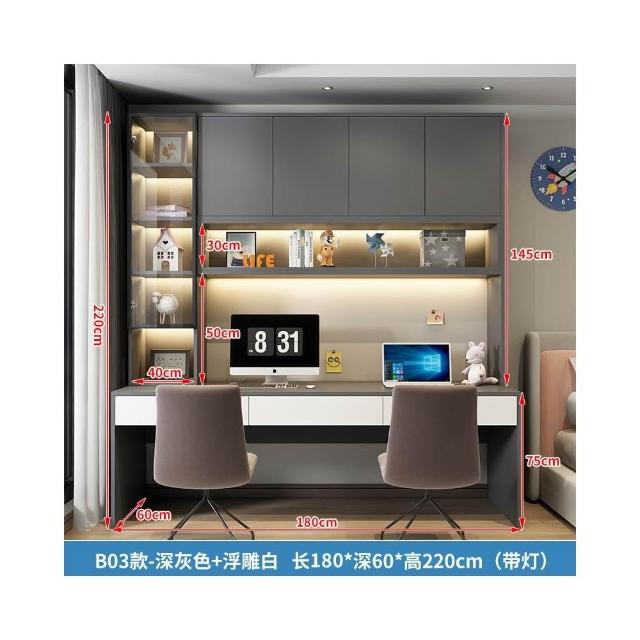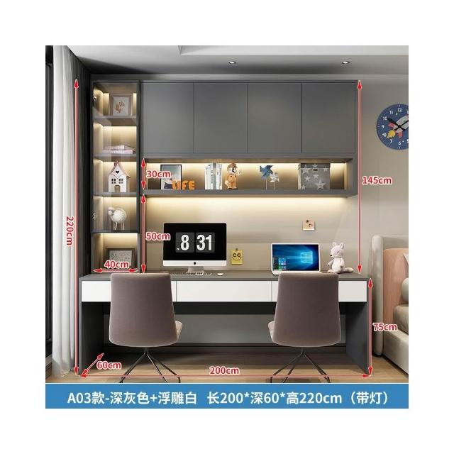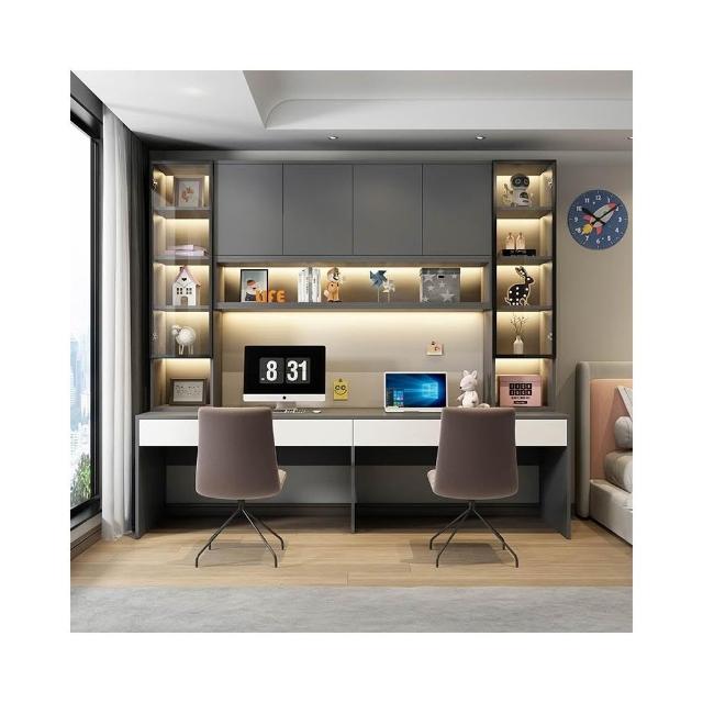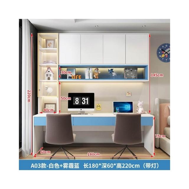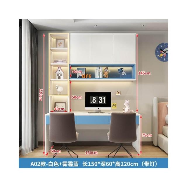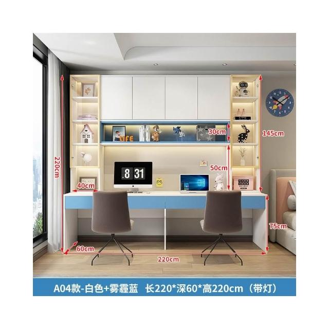 實木雙人書桌書架組合輕奢現代電腦桌書櫃一體臥室加長兒童學習桌