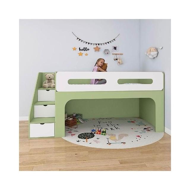 實木半高床原木風兒童小戶型男女孩帶護欄中高床下空間秘密基地床