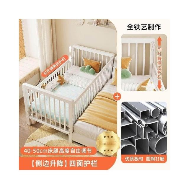 鐵藝兒童拼接床嬰兒床邊加寬床大人可睡寶寶床定制升降圍欄鐵藝床