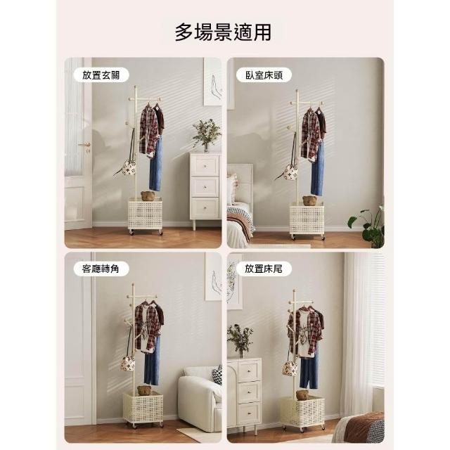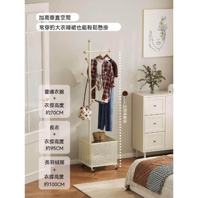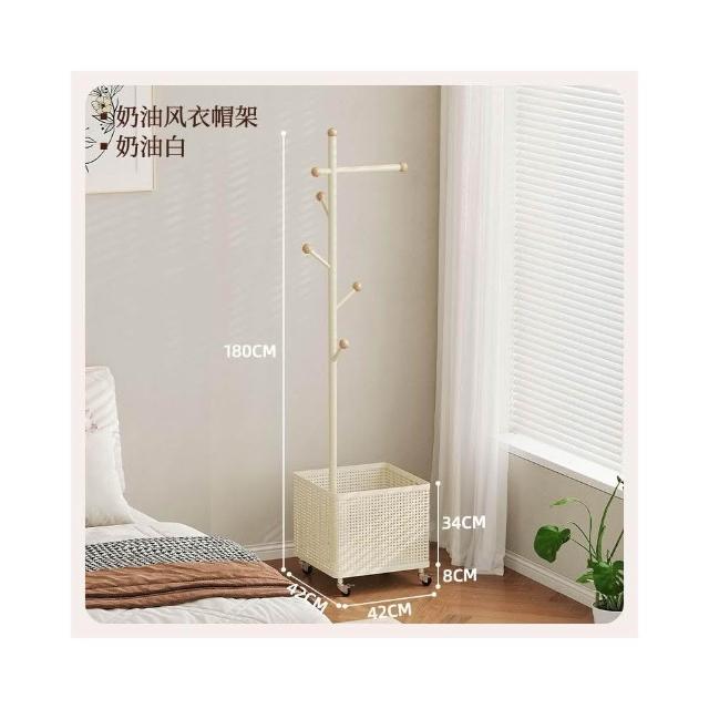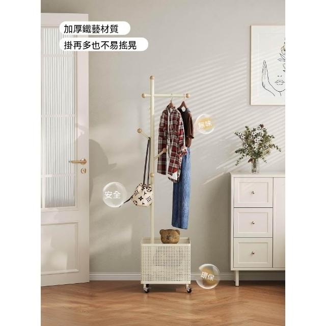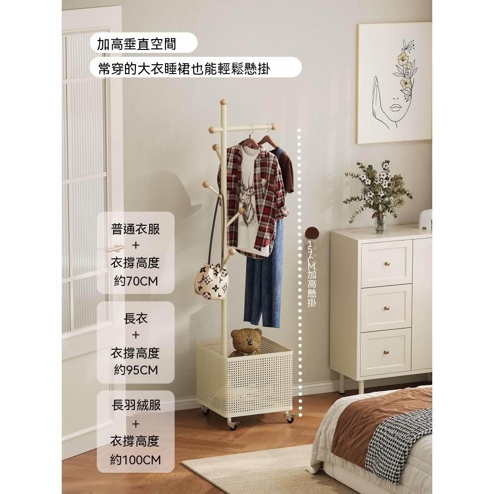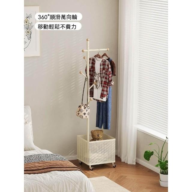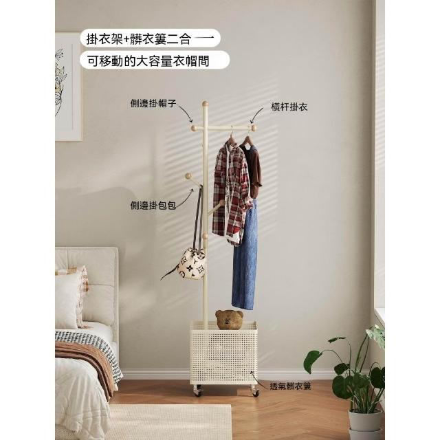 臥室掛衣架家用可移動衣帽架旋轉髒衣簍玄關客廳奶油風落地衣架子