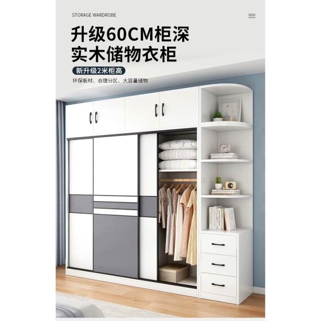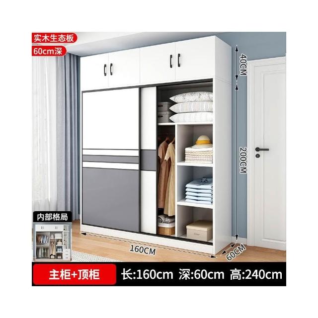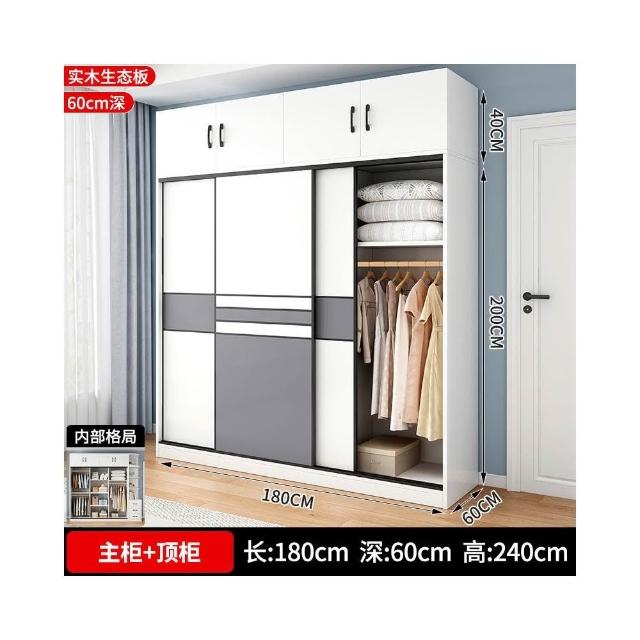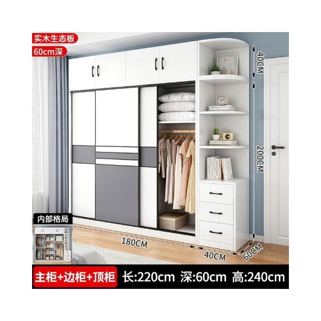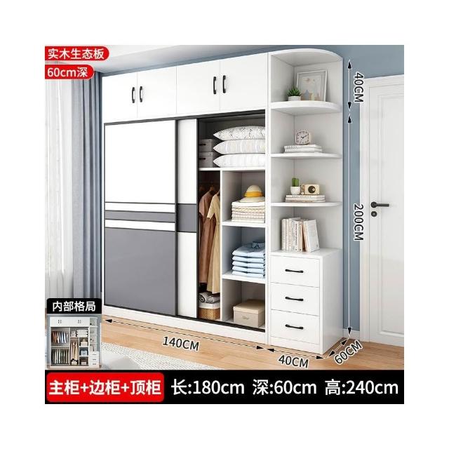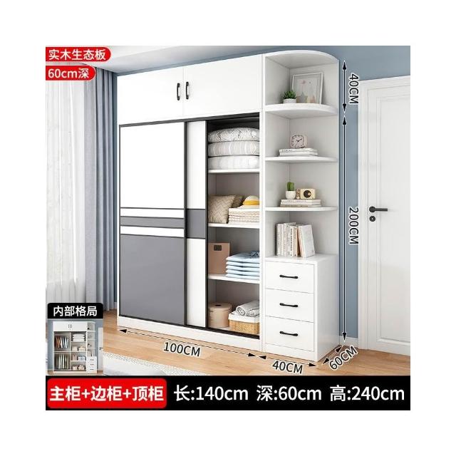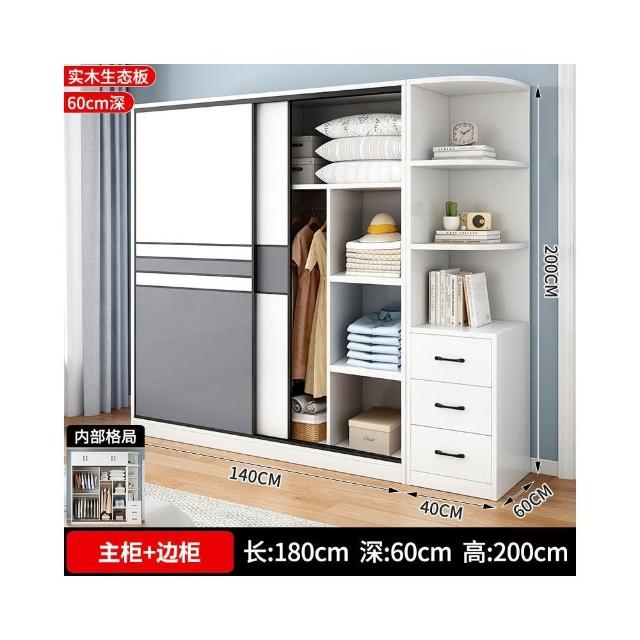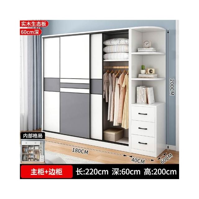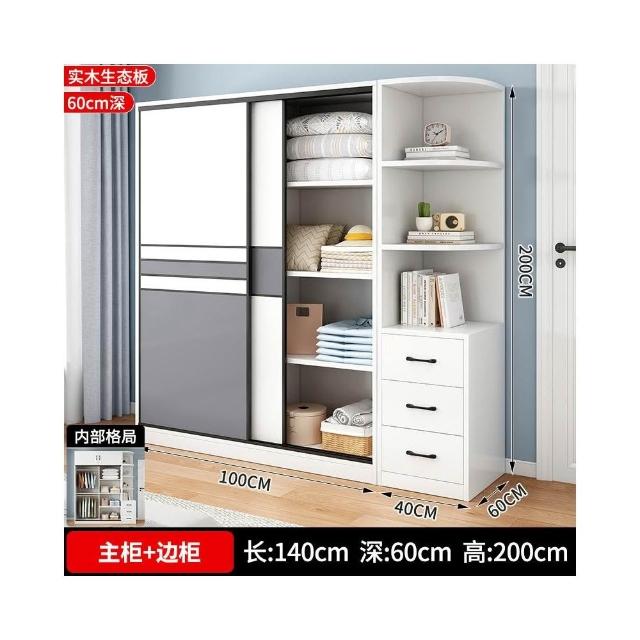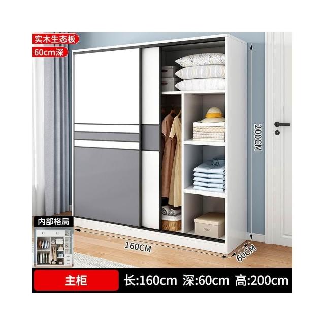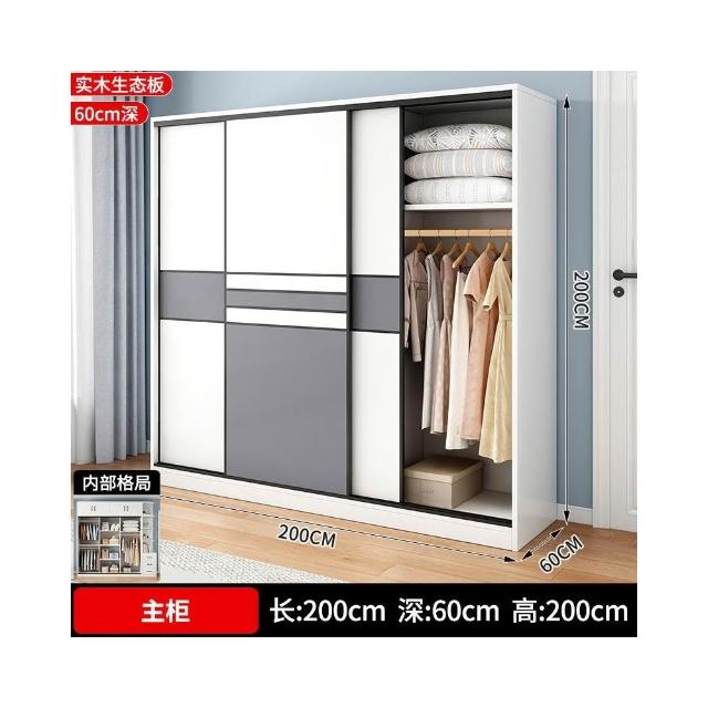衣櫃家用臥室實木生態板推拉門兒童收納櫃子出租房用儲物定制衣櫥