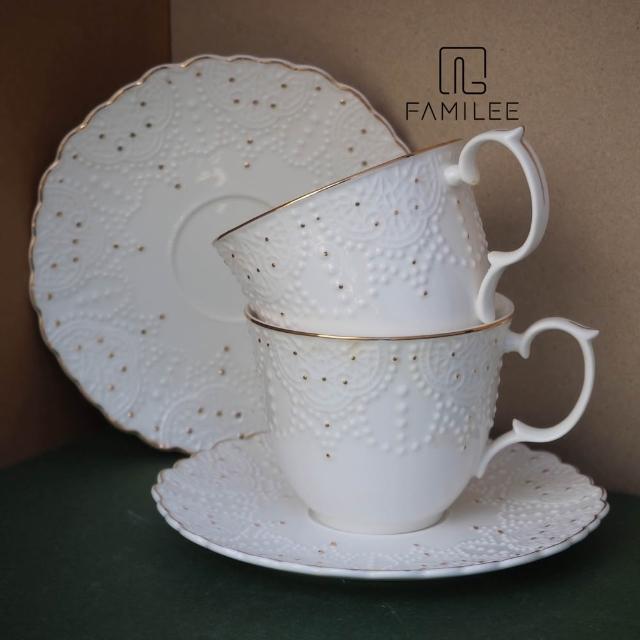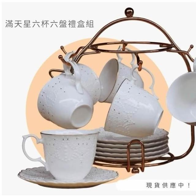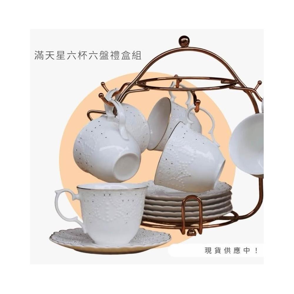 CAN YAO📍浮雕滿天星英式新骨瓷杯 6入咖啡杯組|下午茶套組|6杯6盤附杯架 花茶杯 禮盒 送禮 喬遷禮 咖啡杯