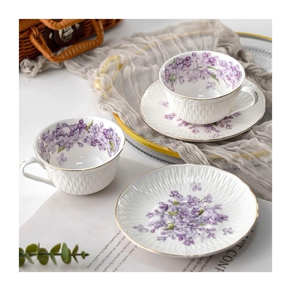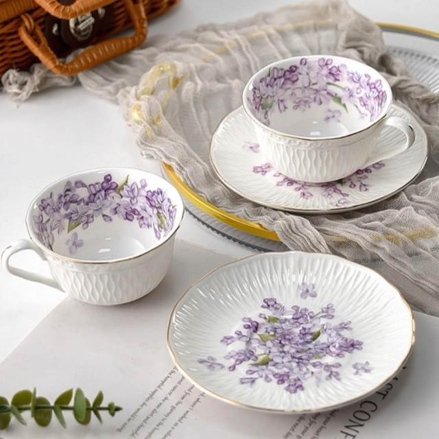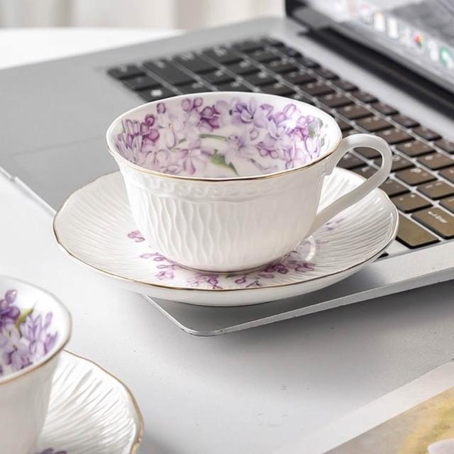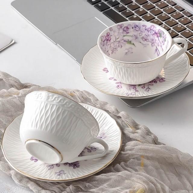 CAN YAO📍浮雕紫丁香 新骨瓷咖啡杯盤 兩杯兩盤 咖啡杯組 對杯組 咖啡杯禮盒 下午茶 杯組 禮品 贈品 花茶杯