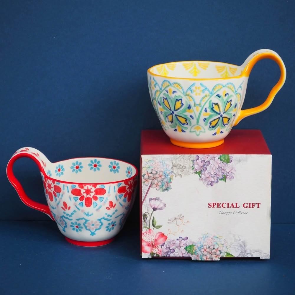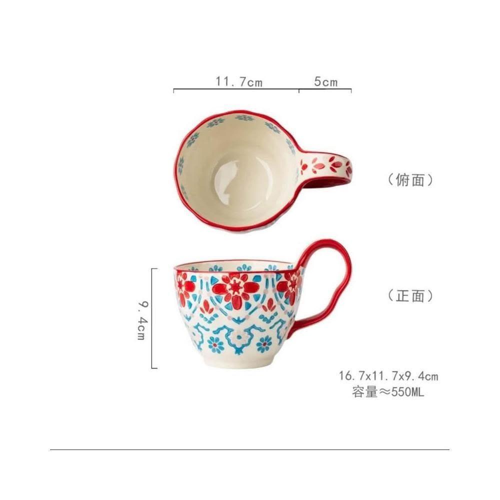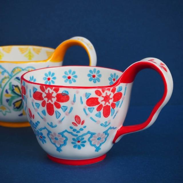 現貨📍手工彩繪馬克杯 波西米亞風 波蘭陶 手繪杯 陶瓷 早餐杯 麥片杯 大容量 北歐風 湯杯 拿鐵杯 大馬克杯 湯杯