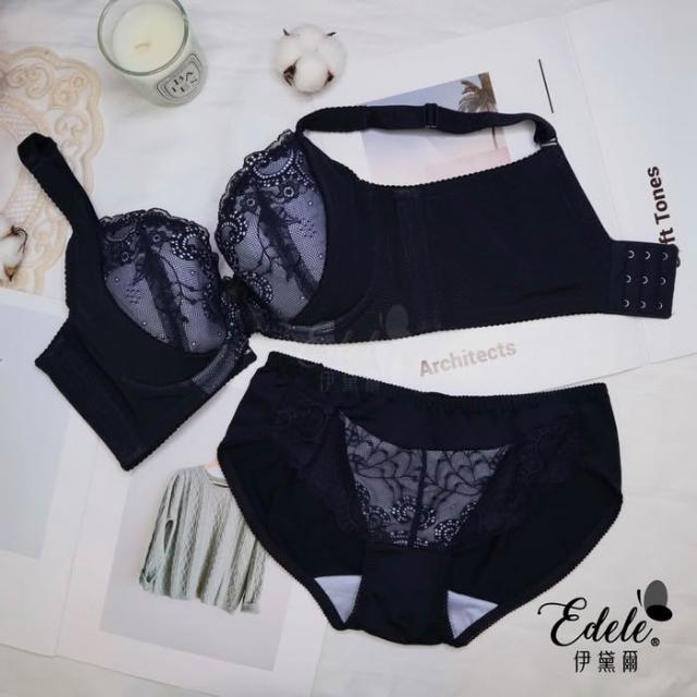 keynell 凱娜爾月彎女神 HIDE美胸蕾絲大罩杯挺V月牙提托內衣 C-F罩 32-44 (深藍) #5182