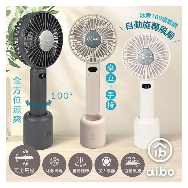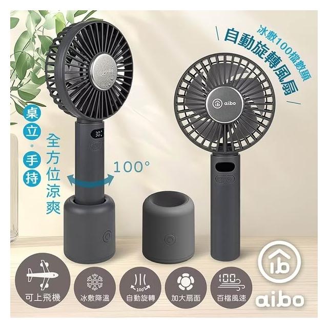 aibo冰敷手持桌立 100檔數顯 自動旋轉風扇 HA-FAN1153