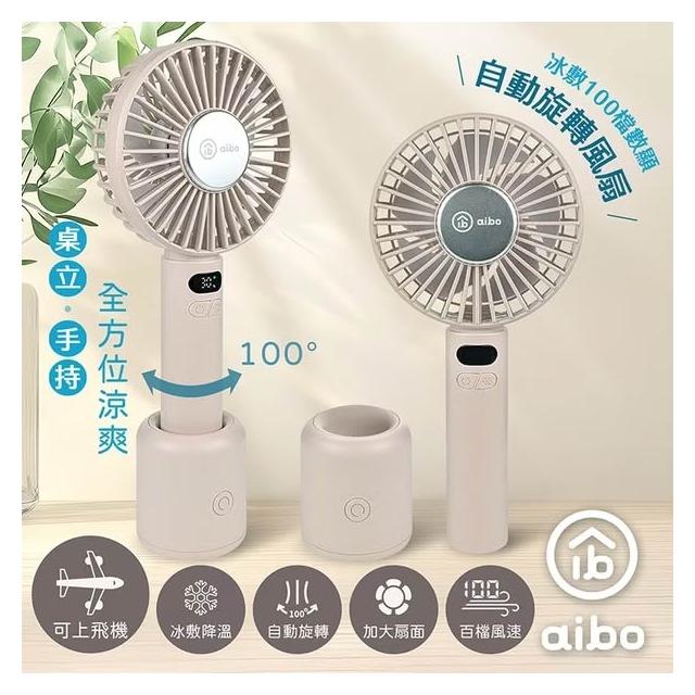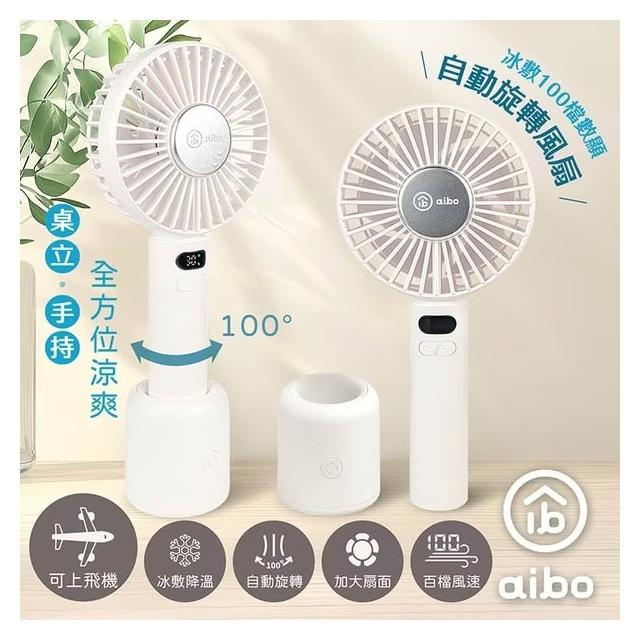 aibo冰敷手持桌立 100檔數顯 自動旋轉風扇 HA-FAN1153