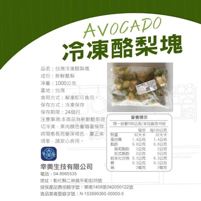幸美生技幸美生技 台灣冷凍冷凍酪梨1kgx12包(農殘檢驗合格)_(超取限重9kg內)