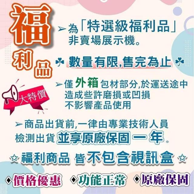 - 商品到貨享十天猶豫期之權益(注意!猶豫期非試用期),依法辦理退貨商品必須是全新狀態且包裝完整(包含主機、附件、內外包裝、隨機文件、贈品等)。如商品一經拆封或使用致商品價值受損(例僅得以福利品出售),商店將向消費者就商品一部或全部價值減損收取適當之費用(回復原狀、整新費),否則將影響退貨的權限。請先確認商品正確、外觀可接受,再行開機/使用,以免影響您的權利,祝您購物順心。