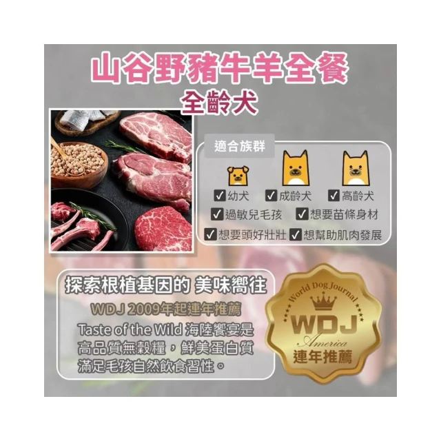 Taste of the Wild 海陸饗宴3隻貓 海陸饗宴狗飼料 無穀 犬飼料 成犬 幼犬 老犬 懷孕授乳 小顆粒 全齡