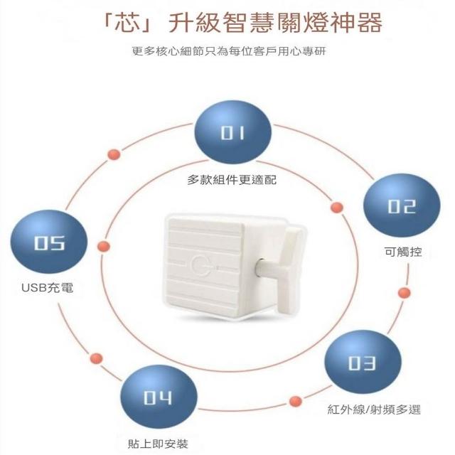 新款即貼即用免安裝無線開關附4力臂 電燈遙控開關 隨手無線開燈無線關燈神器智慧開關無線遙控隨意貼免拆線佈線床頭懶人開關