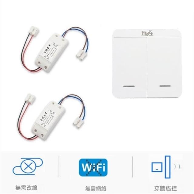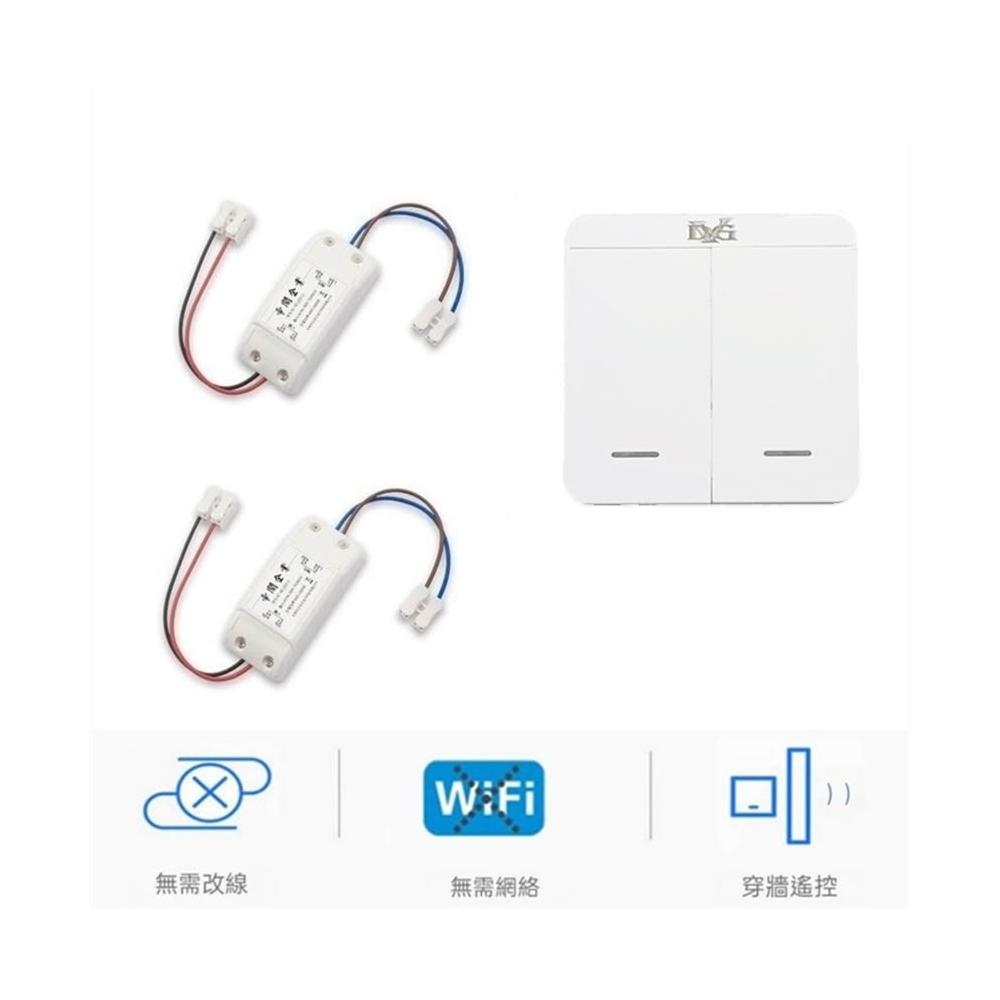家用燈具免佈線遙控開關 加裝燈具開關110~220v隨意貼遙控發射器 雙鍵開關可控制兩個電源 10a單雙控功能無線開關