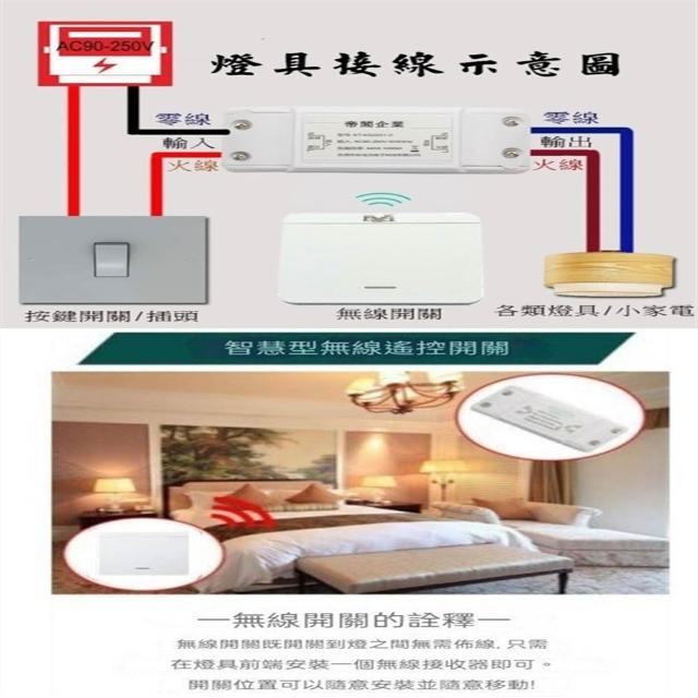 家用燈具免佈線遙控開關 加裝燈具開關110~220v隨意貼遙控發射器 雙鍵開關可控制兩個電源 10a單雙控功能無線開關