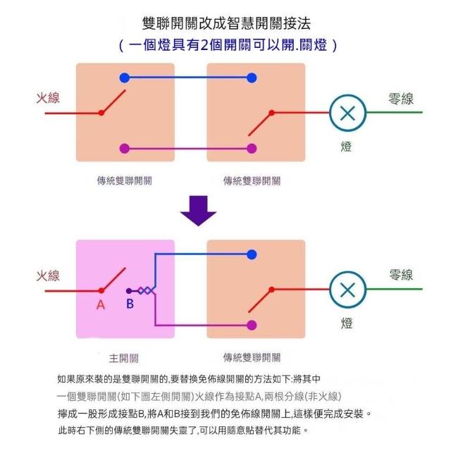 免佈線單控改雙控無線開關 直接安裝原本開關裡面 無線遙控開關單火線模組射頻家用無線通斷器110-220V增加燈具開關