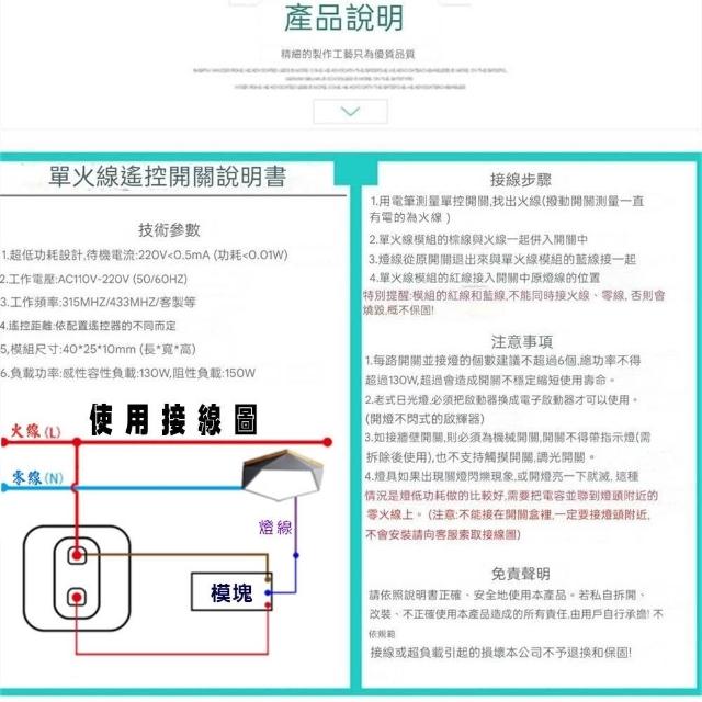 免佈線單控改雙控無線開關 直接安裝原本開關裡面 無線遙控開關單火線模組射頻家用無線通斷器110-220V增加燈具開關