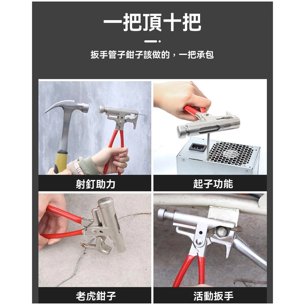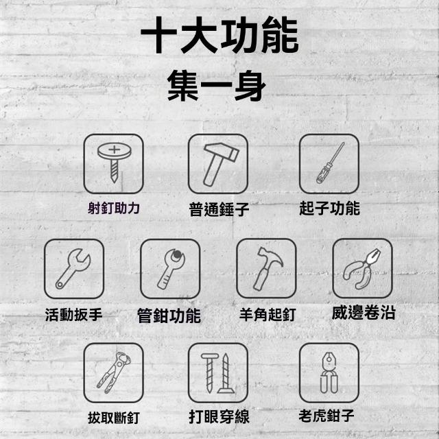 10種功能多用途工具螺絲刀起釘夾持錘鍛打鐵錘助力打釘器 老虎鉗 扳手不銹鋼多用錘子螺絲起子萬能鎚子射釘槍釘器水泥釘