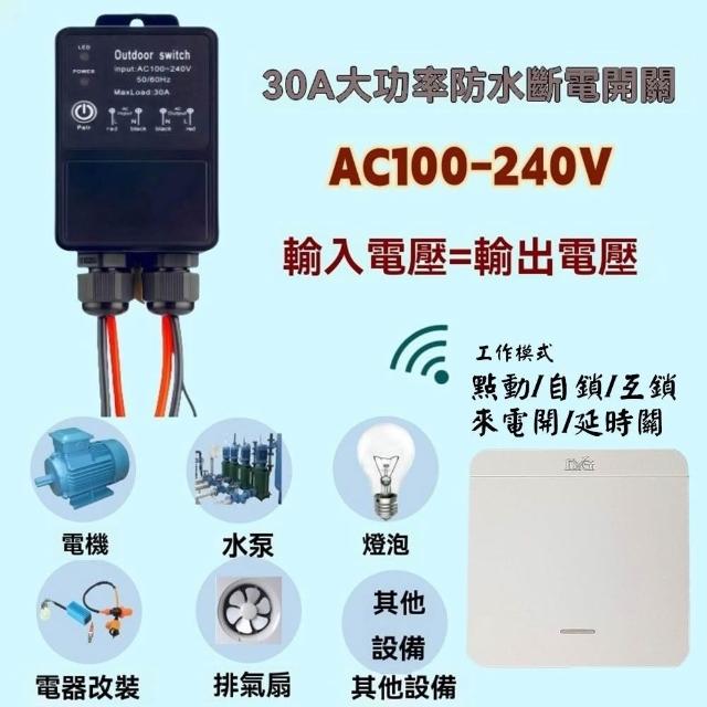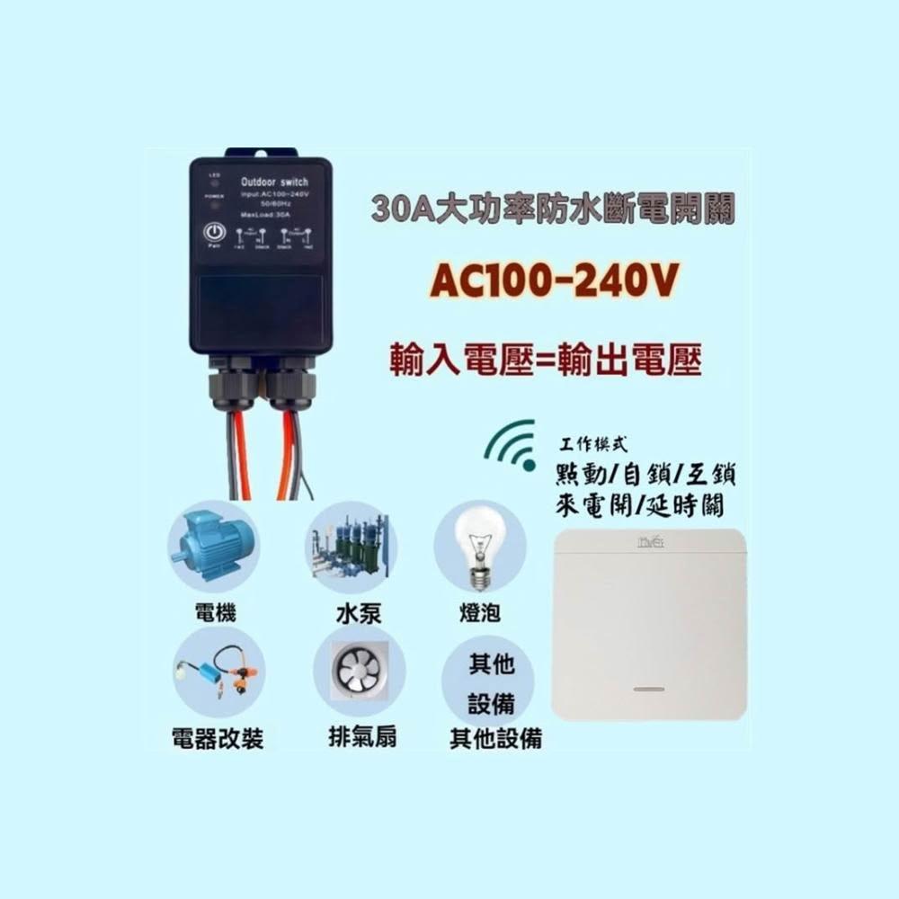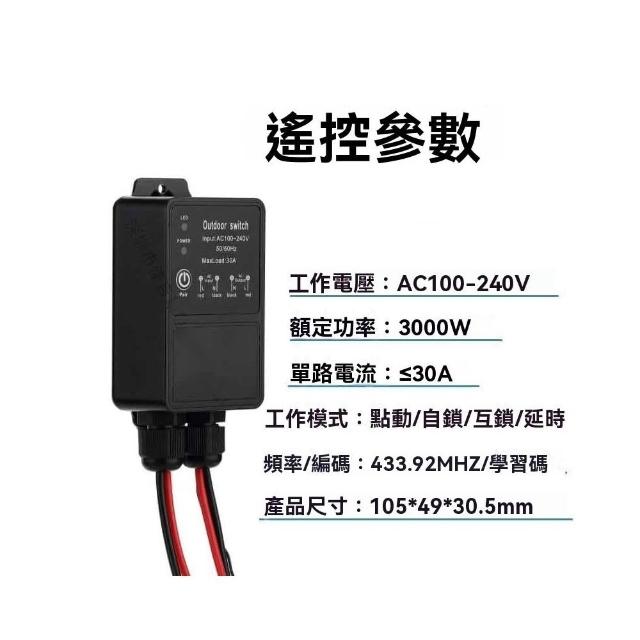 戶外防水開關大功率無線開關寬電壓110V~220v馬達遙控開關30A遠程式控制開關LED燈水泵通斷器3000W繼電器