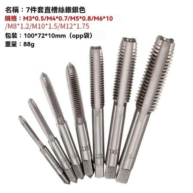機用絲錐高速鋼直槽先端絲攻不銹鋼直槽攻牙鑽頭M3M4M5M6M8M10M12 7件套銀色直槽絲錐套組螺絲孔無牙修護