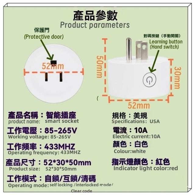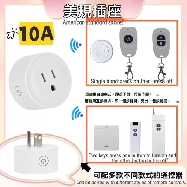 風扇無線開關10A無線遙控插座小電器無線插座美規無線智慧插座開關110V無線開關插座220V插座免接線智慧無線遙控插座