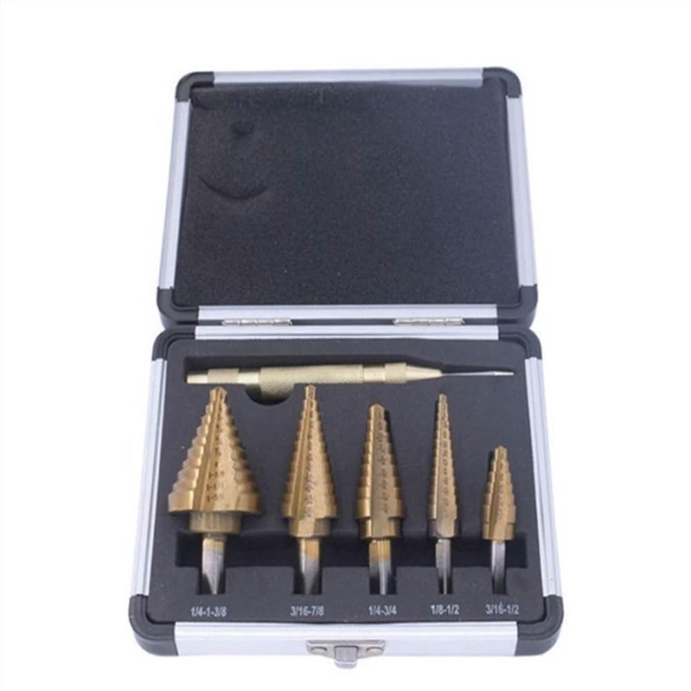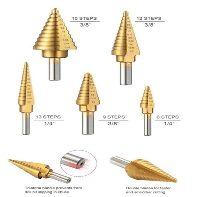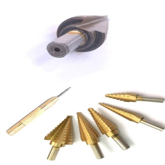速鋼英制寶塔鑽三角柄鍍鈦開孔器 6件套擴孔開孔階梯鑽頭套裝 6件套英制鑽頭【鋁盒裝
