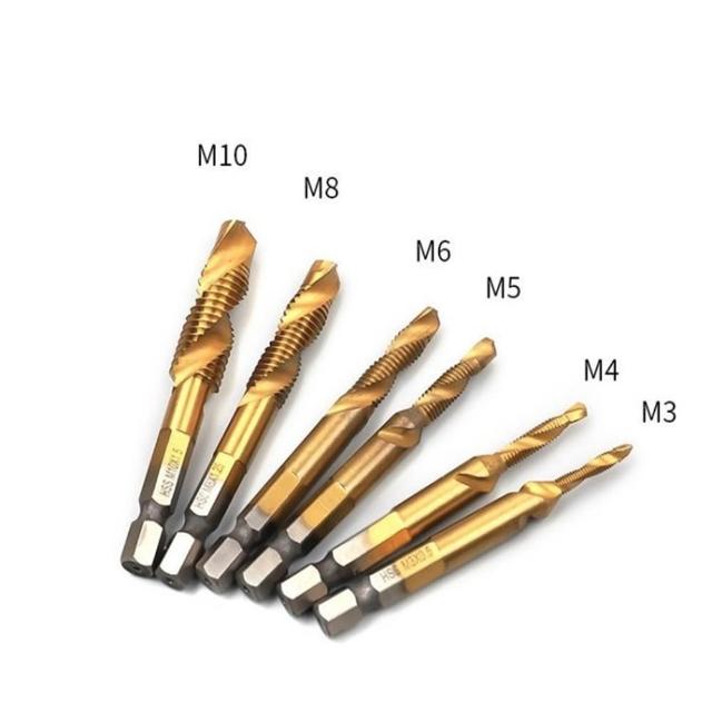6pcs鍍鈦六角柄鑽攻一體複合絲攻牙螺絲孔螺絲紋路鑽孔一起上螺紋 螺旋機用絲錐公英制高速鋼攻牙螺絲
