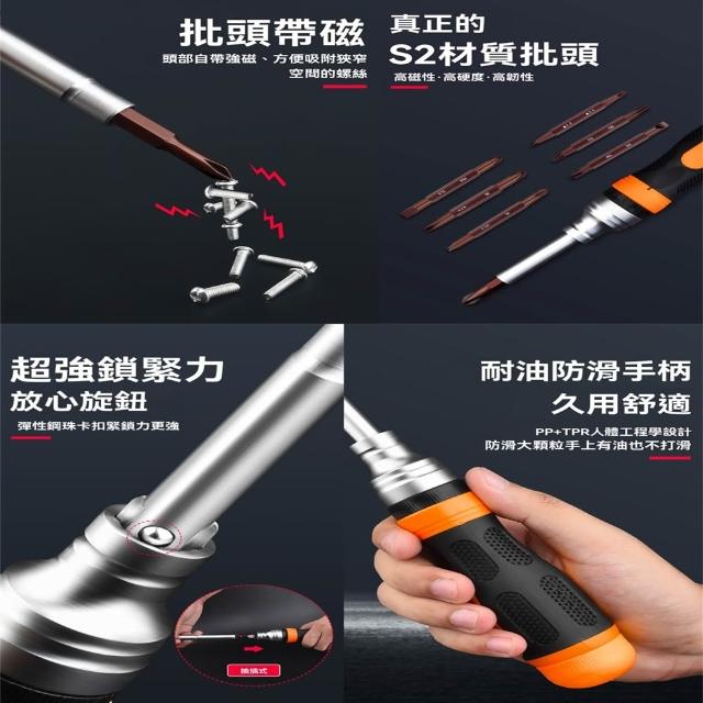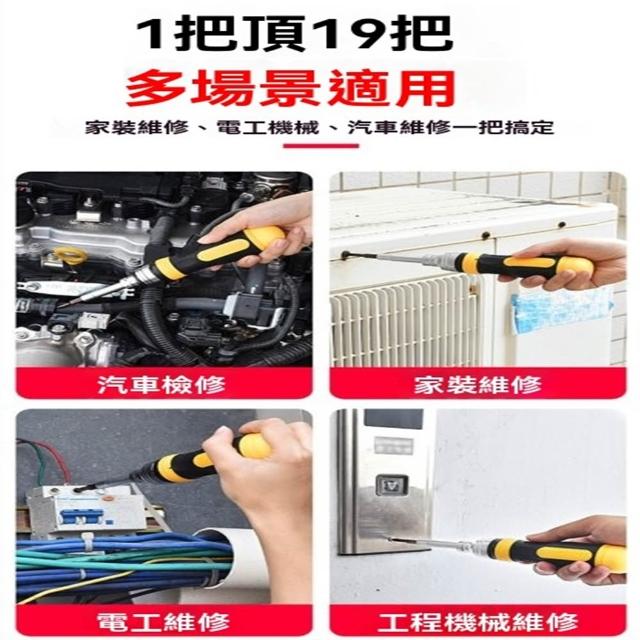 19合1多功能棘輪螺絲刀棘輪磁性兩用S2螺絲刀套裝內置8枚加長雙頭批頭附加延長桿十字一字雙頭手動工業級改錐起子螺絲批