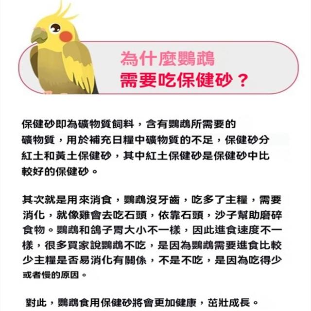 鳥用砂鸚鵡幫助消化保健沙850g柯爾鴨補礦物質高鈣玄鳳虎皮鳥糧鳥食飼料食物補鈣專用紅土保健沙鳥用紅土