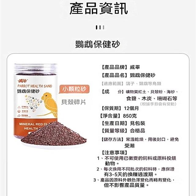 鳥用砂鸚鵡幫助消化保健沙850g柯爾鴨補礦物質高鈣玄鳳虎皮鳥糧鳥食飼料食物補鈣專用紅土保健沙鳥用紅土