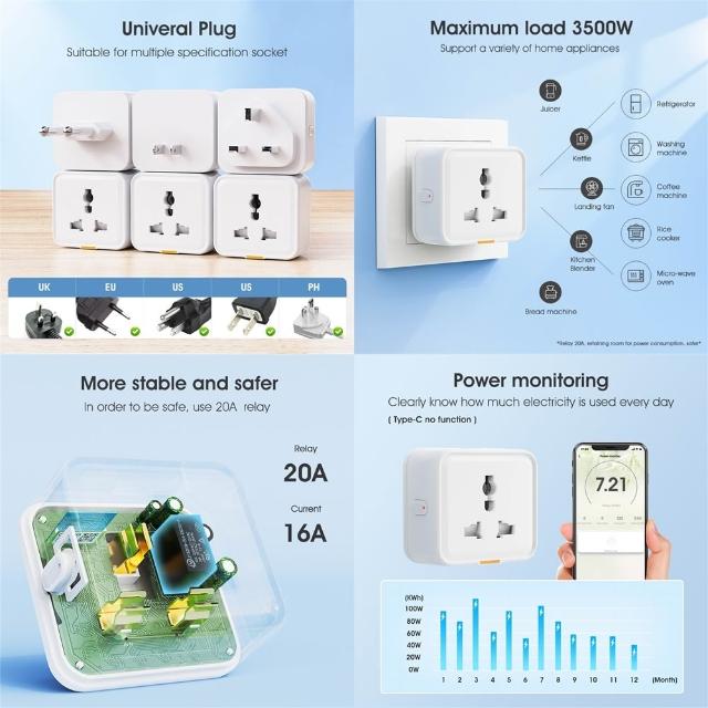 智慧家居遠端遙控插座3500W塗鴉手機APP語音定時遙控大功率萬能美規US插頭TUYA-帶Type-C-RF