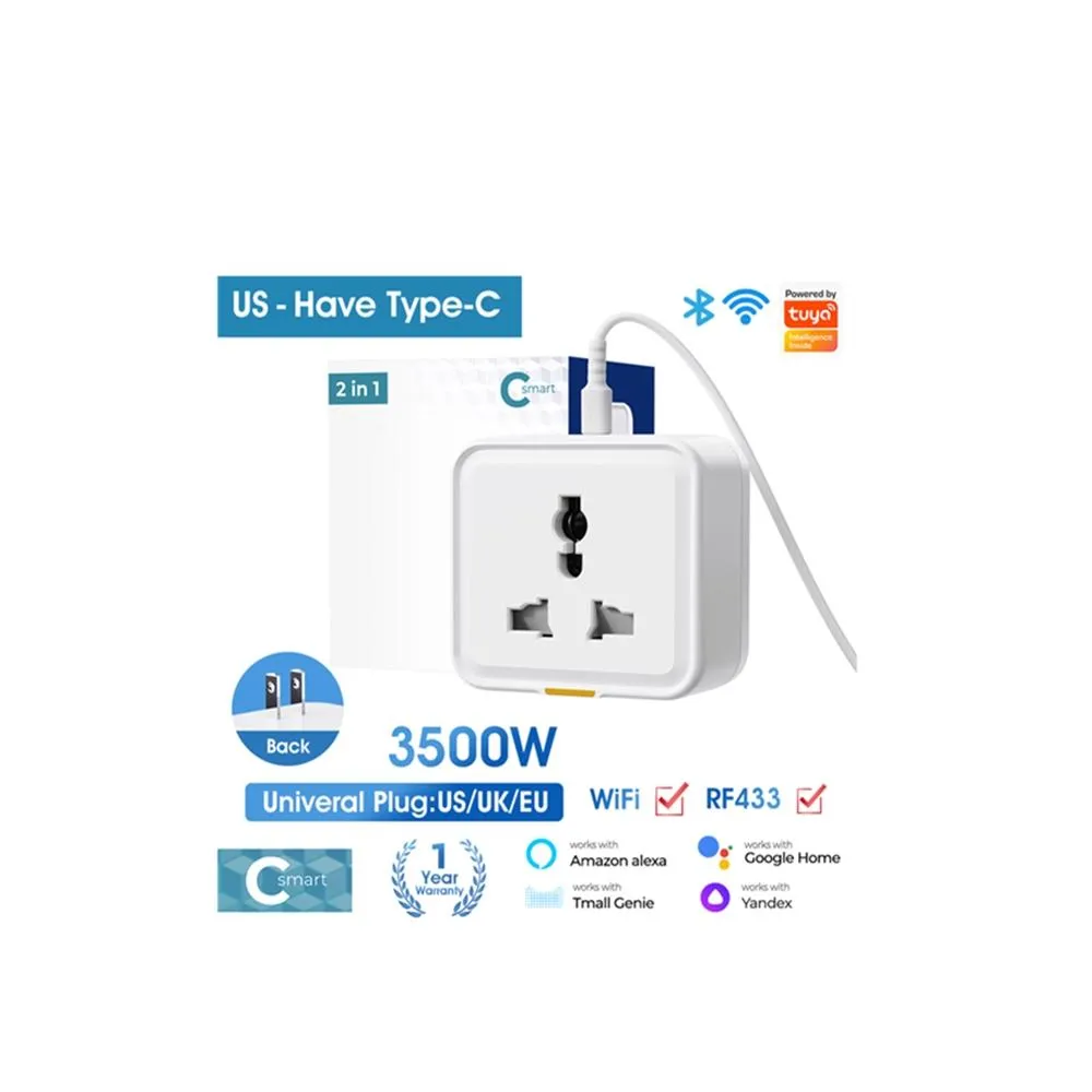 智慧家居遠端遙控插座3500W塗鴉手機APP語音定時遙控大功率萬能美規US插頭TUYA-帶Type-C-RF
