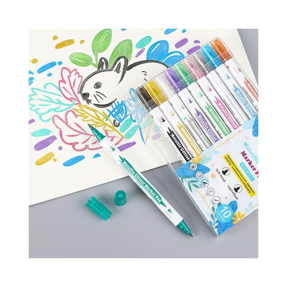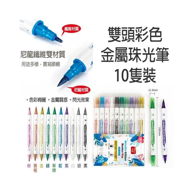 彩色金屬筆 10色 金屬油漆筆 雙頭軟硬頭 黑卡筆 雙頭麥可筆 雙頭馬克筆 金屬雙頭筆 彩繪筆 黑紙筆 油性馬克筆 繪畫