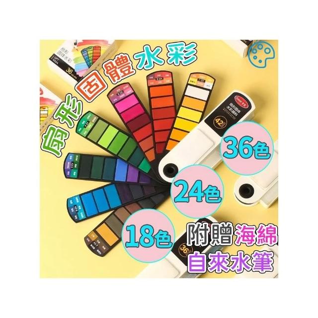 固體水彩 18/24/36色 扇形固體水彩套裝 口袋式固態水彩 塊狀水彩顏料 便攜水彩顏料 水彩顏料 旋轉水彩 顏料