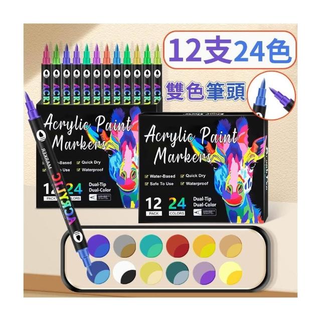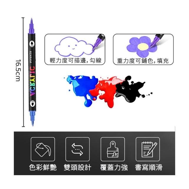 雙頭雙色 丙烯馬克筆 雙頭丙烯馬克筆 防水彩繪筆 馬克筆 水性墨水 麥克筆 黑紙筆 丙烯彩色筆 水粉油畫 彩繪筆