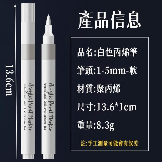 白色丙烯筆 丙烯馬克筆 白色高光筆 軟頭丙烯筆 壓克力筆 白色筆 白色麥克筆 白色馬克筆 防水速乾 單隻
