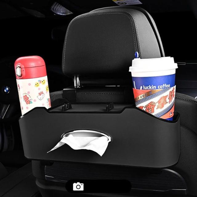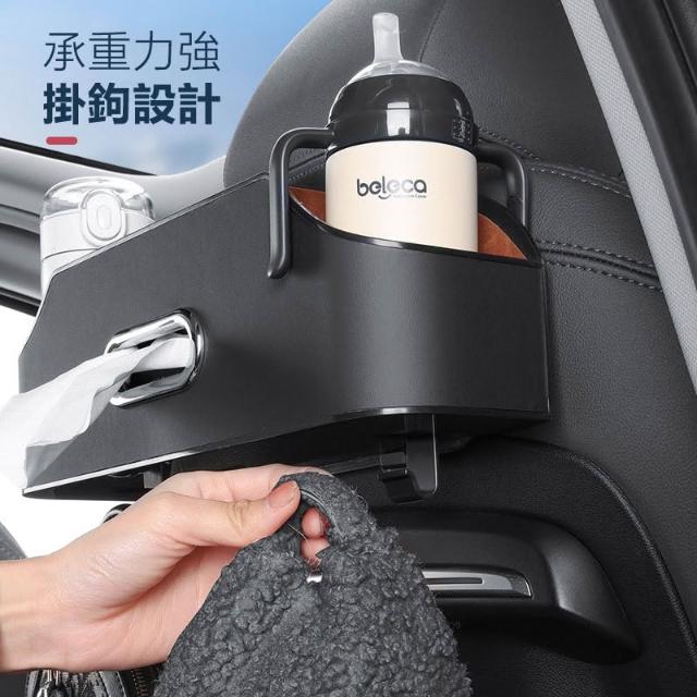 汽車椅背收納盒 黑色 多功能儲物箱 車用收納盒 車載座椅 后背置物盒 車內用品 水杯架 掛袋 掛鉤