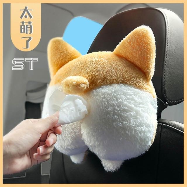 車載紙巾盒 柯基屁股 車用面紙套 掛式抽紙盒 綁式 可愛抽紙盒 搞笑衛生紙套 汽車面紙套