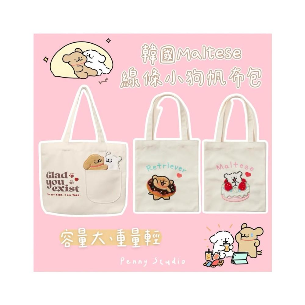 𝗣𝗲𝗻𝗻𝘆 𝗦𝘁𝘂𝗱𝗶𝗼韓國Maltese線條小狗帆布包✔側背包 肩背包 帆布袋 手提袋