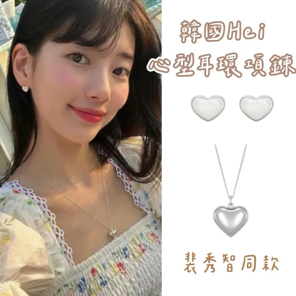 𝗣𝗲𝗻𝗻𝘆 𝗦𝘁𝘂𝗱𝗶𝗼韓國Hei心型耳環項鍊 裴秀智同款 純銀