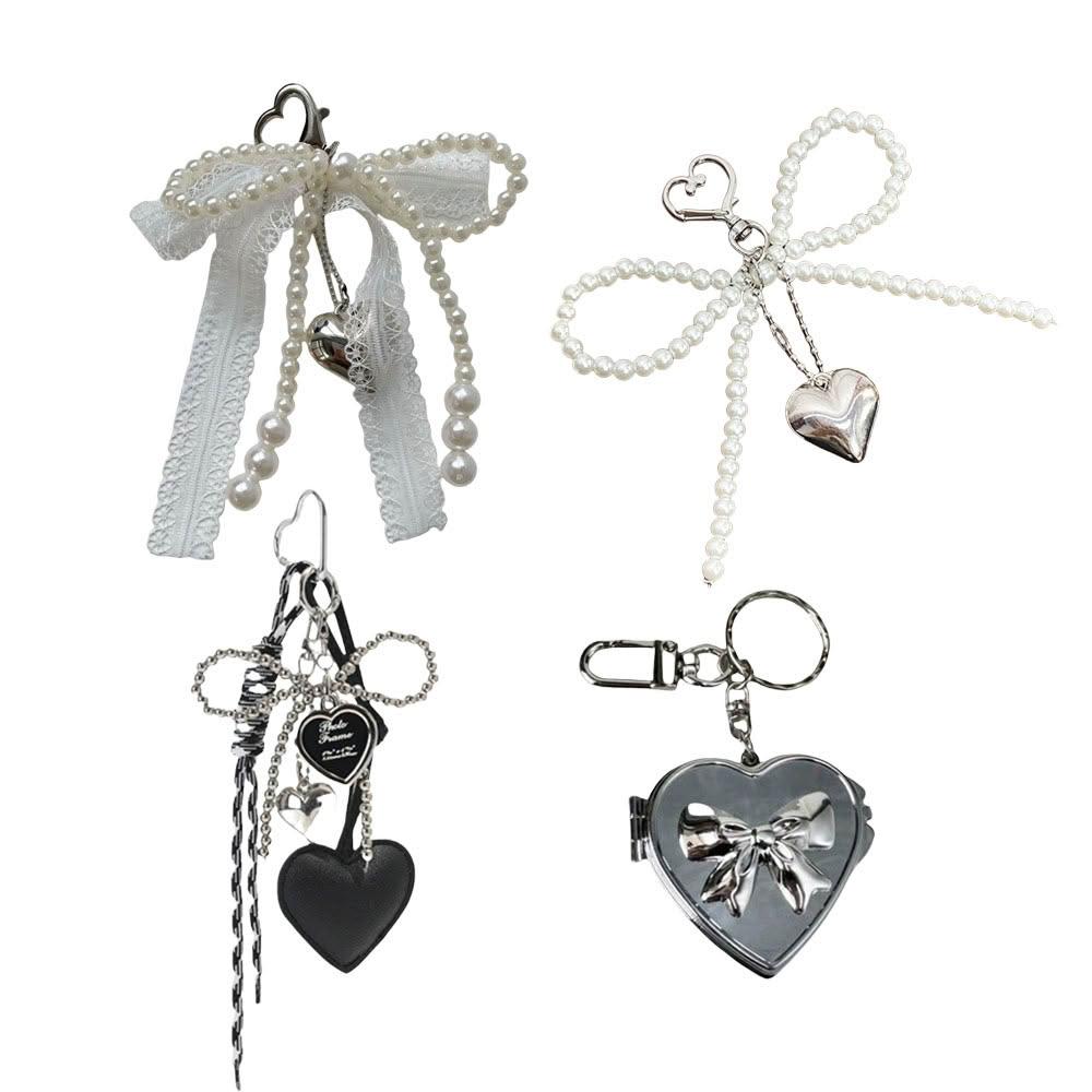愛心蝴蝶結吊飾 包包掛飾 包包吊飾 Y2K包掛 珍珠蝴蝶結 掛件 小鏡子 吊墜 手機吊飾 鑰匙扣 韓系 珠珠吊飾